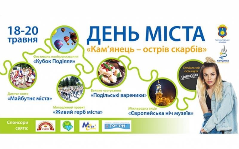 19 травня у різних локаціях міста проходитимуть міський конкурс «Супер-малюк-2018», виставка досягнень промислових підприємств міста, підписання угод про співпрацю, святкова хода, частування подільськими варениками, шоу-програма гурту «MamaRika».