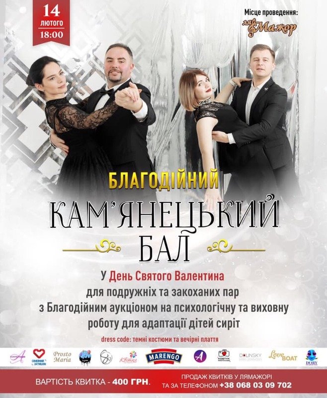 Благодійний "Кам’янецький Бал" 14 лютого 2019; м. Кам’янець-Подільський, ресторан "Ля Мажор"; 18:00.
