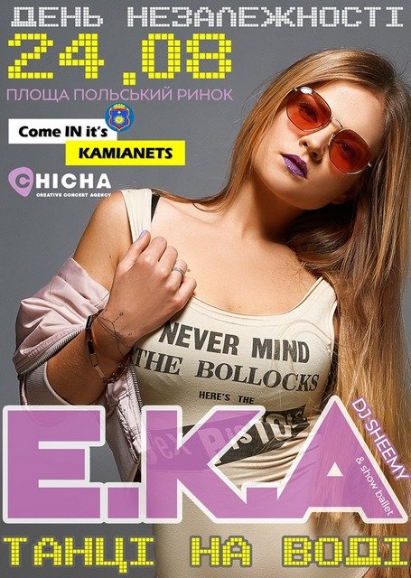 Тож у День незалежності України, 24 серпня, на площі Польський ринок чарівна E.K.A з шоу-балетом запалюватиме Кам'янець-Подільський. Спеціальний гість свята - DJ Sheemy. Початок – о 21:00.