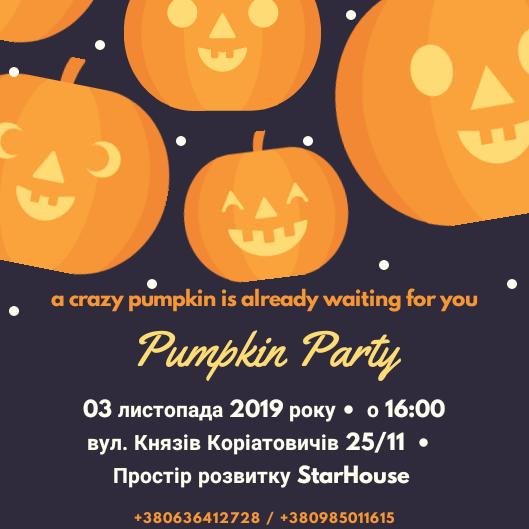 Шалений гарбузик із радістю чекає на вас у неділю 3 листопада о 16:00 у "StarHouse" запрошує усіх на "Pumpkin party"