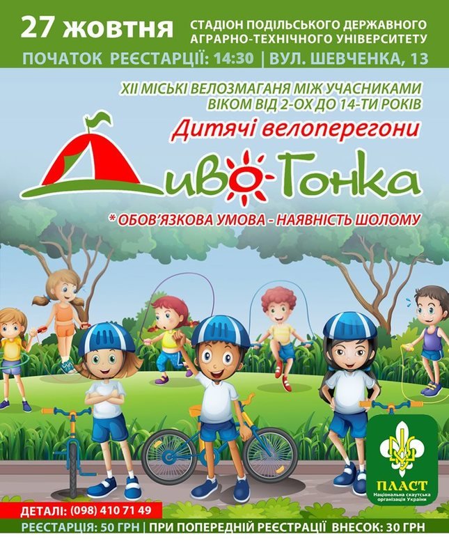 Нарешті! Осіння "Дивогонка"! 27 жовтня о 14:30 стадіон ПДАТ, вул. Шевченка, 13. Реєстраційний внесок - 50 грн, при попередній реєстрації - 30 грн. Наявність шолому обов'язкова.