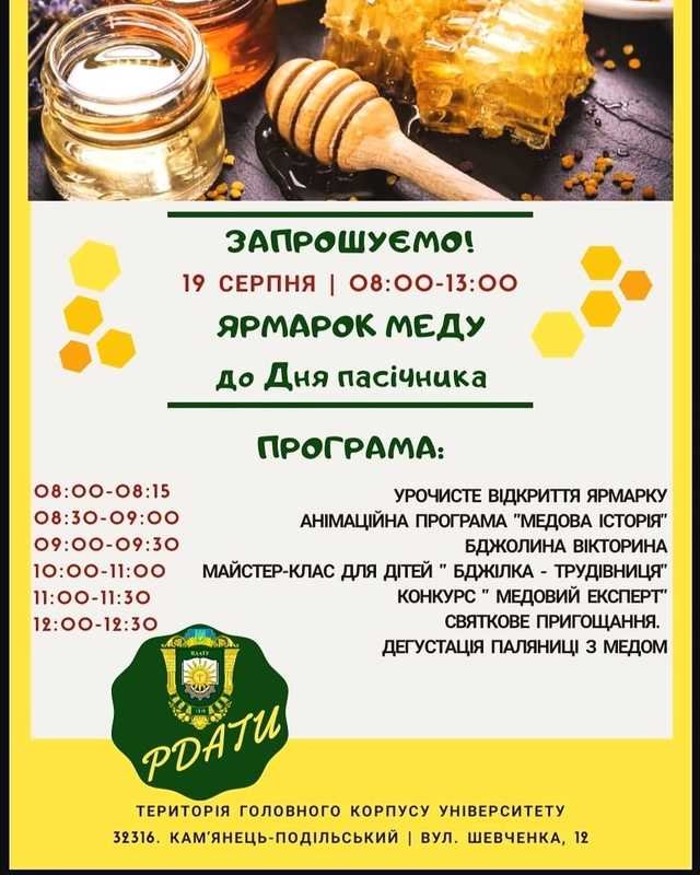 Подільський державний аграрно-технічний університет запрошує всіх бажаючих на ярмарок меду!