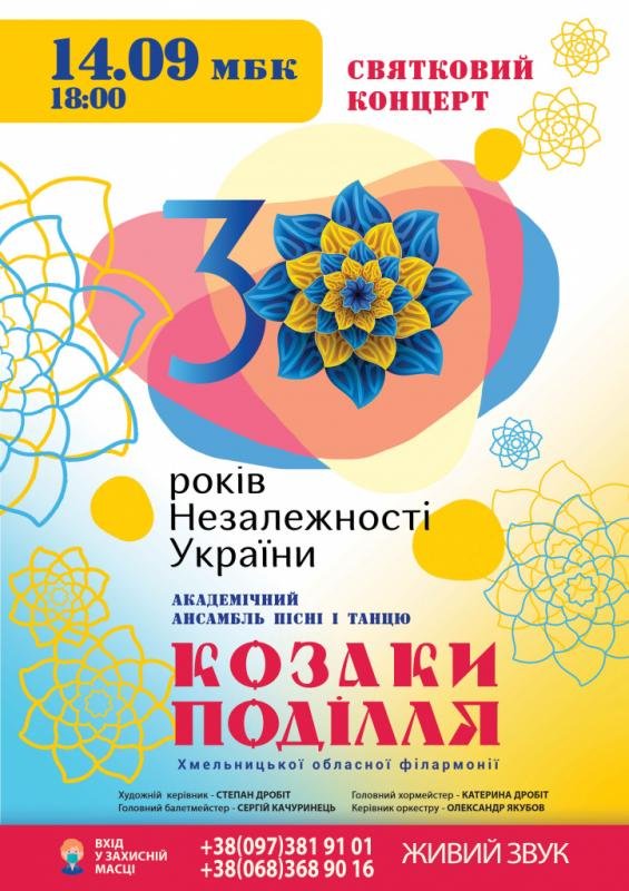 Академічний ансамбль пісні і танцю "Козаки Поділля" запрошує всіх кам'янчан та гостей міста на святковий концерт до відзначення 30-річчя Незалежності України!