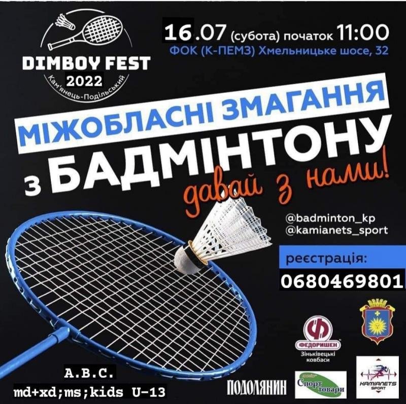 - 16 липня 11:00 - міжобласні змагання з бадмінтону за категоріями (детальніше на афішці).