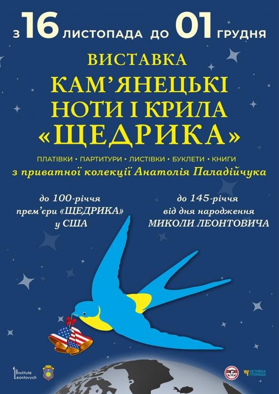 Виставка "Кам'янецькі ноти і крила "Щедрика" присвячена світовому тріумфу "Щедрика" і столітньому ювілею прем'єри "Щедрика" у Нью-Йорку. Українська щедрівка, виконана Українською Республіканською Капелою під орудою видатного диригента Олександра Кошиця, підкорила світову музичну сцену й індустрію кіно, ставши міжнародним різдвяним гімном.