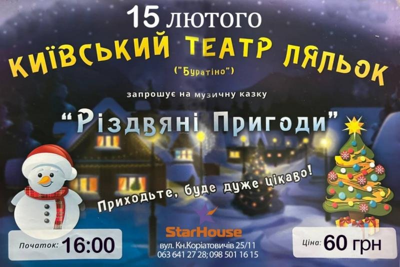 Вистава відбудеться 15 лютого на 16:00. Вартість 60 грн.