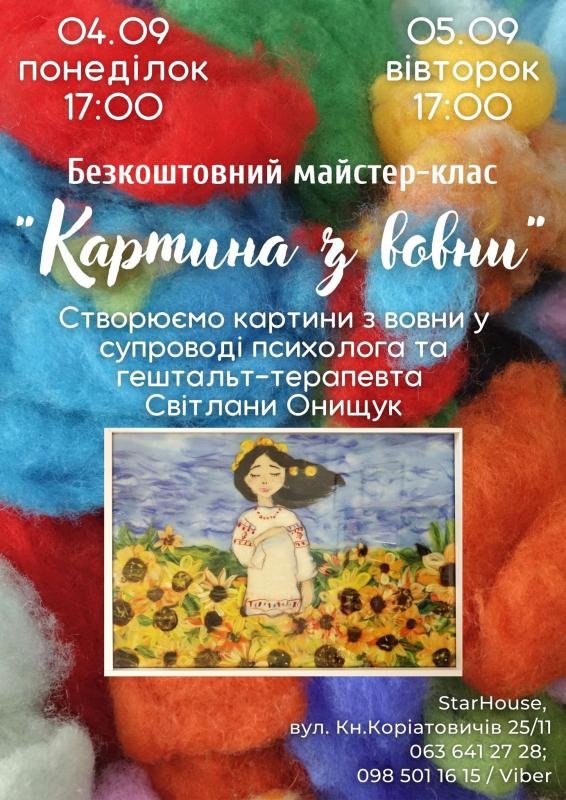 Запрошуємо вас на захопливе арттерапевтичне заняття "Картина з вовни" для дорослих!