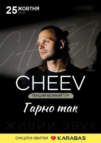 Концерт CHEEV в Кам'янці-Подільському відбудеться 25 жовтня 2023 р., 19:00, Міський будинок культури.