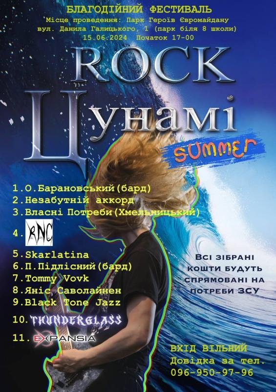 15 червня, субота, парк Героїв Євромайдану – благодійний музичний фестиваль "Рок-Цунамі", початок о 17:00! Традиційно збиратимемо кошти на підтримку Збройних сил України!