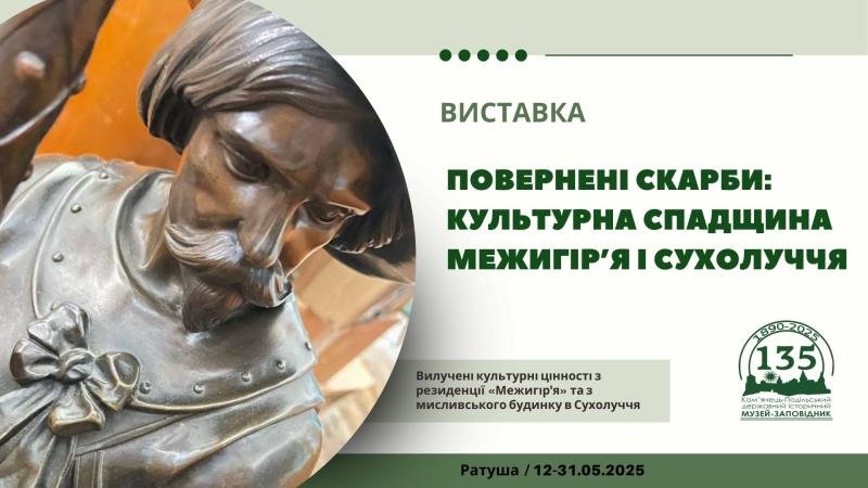 01-31.07.2025 - експонування вилучених культурних цінностей з резиденції "Межигір'я" та з мисливського будинку в Сухолуччя. До відзначення Міжнародного дня музеїв, Ратуша.
