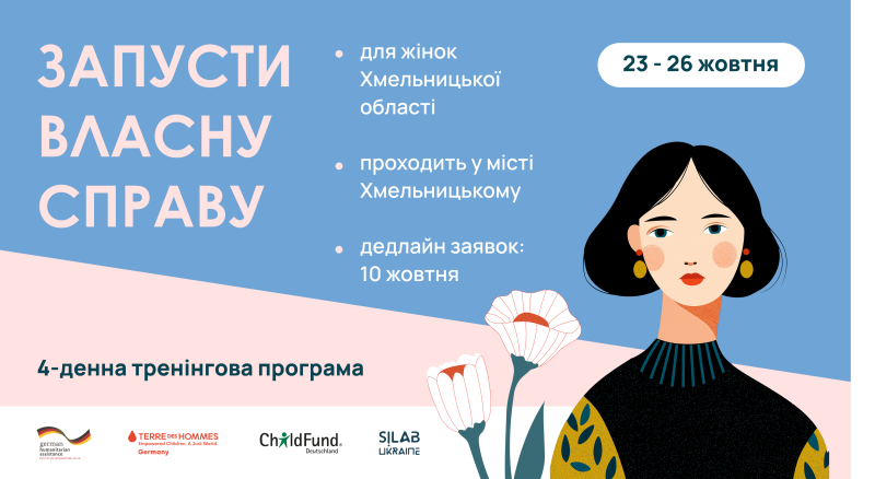 Долучитися можуть: мешканки Хмельницької області, зокрема жінки, чиї родини/бізнеси постраждали під час війни; жінки-ВПО, дружини військових або ветеранів, жінки, які проживають у сільській місцевості, представниці вразливих соціальних груп. Як взяти участь? Заповнити анкету для участі можна до 10 жовтня за посиланням: https://www.silabua.com/post/khmelnytskyi