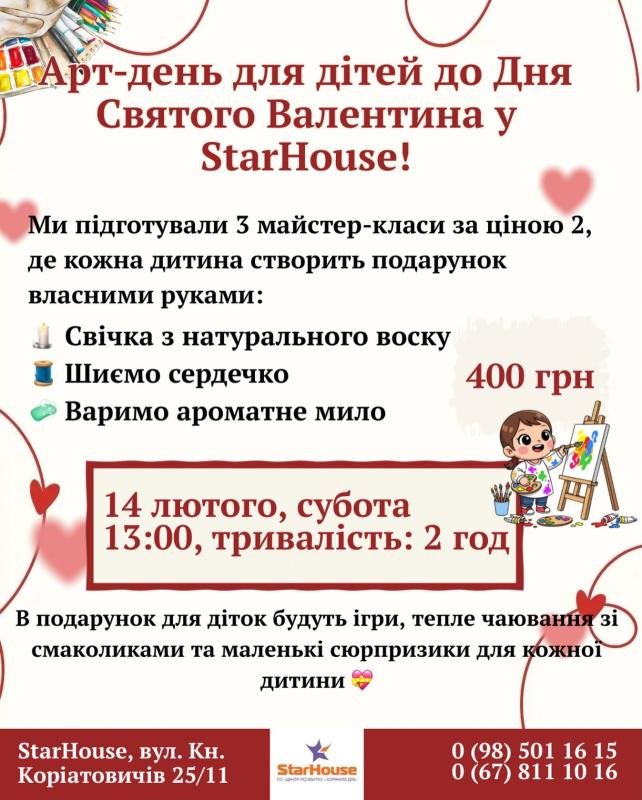Арт-день для дітей до Дня святого Валентина у "StarHouse".
