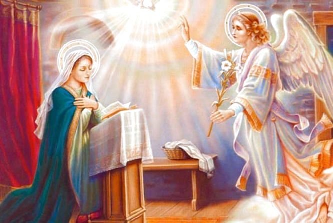 У свято Благовіщення ("радісна звістка, повідомлена Пресвятій Богородиці") Церква згадує, як Пресвятій Діві явився архангел Гавриїл і повідомив, що Їй належить народити Сина Божого.