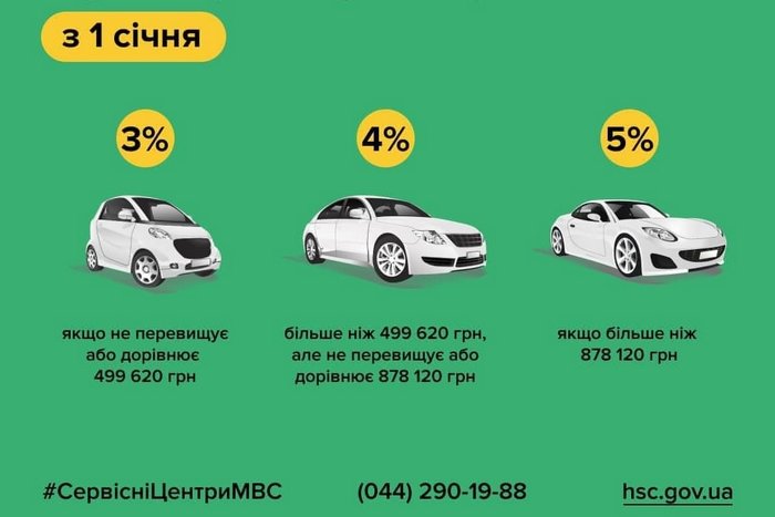 З 1 січня змінюється розмір ставки збору на обов’язкове державне пенсійне страхування під час першої державної реєстрації легкових авто. Це пов’язано з тим, що збільшився прожитковий мінімум, який наразі становить 3028 гривень. Саме від нього залежить розмір зазначеного податку.