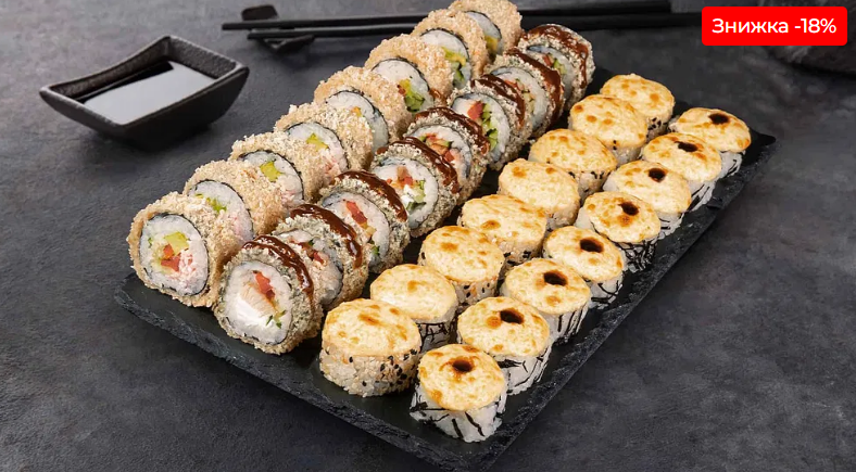 - пропонує широкий асортимент суші та ролів, щоб задовольнити різні смаки.