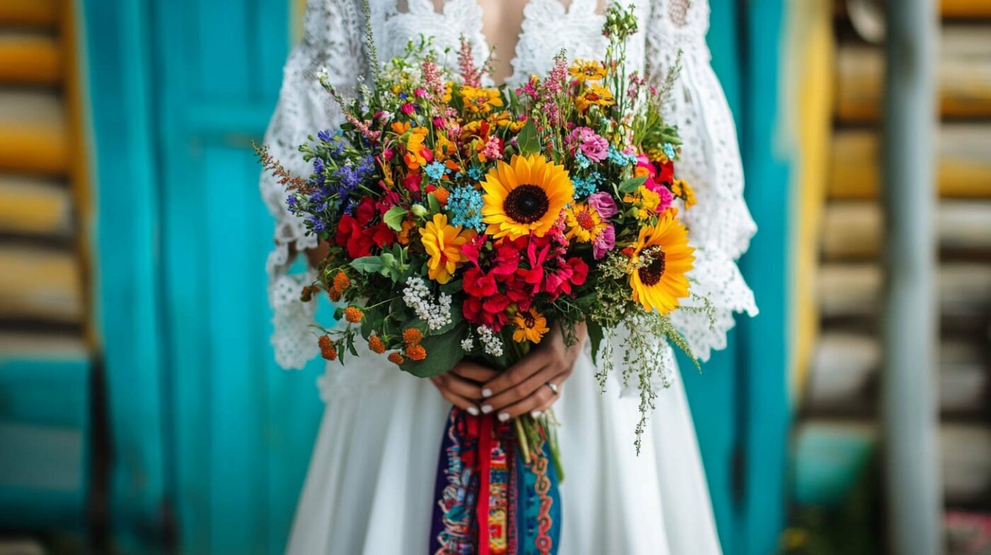 - Національні мотиви — букети з мальвами, соняхами, барвінком для весіль в українському стилі.